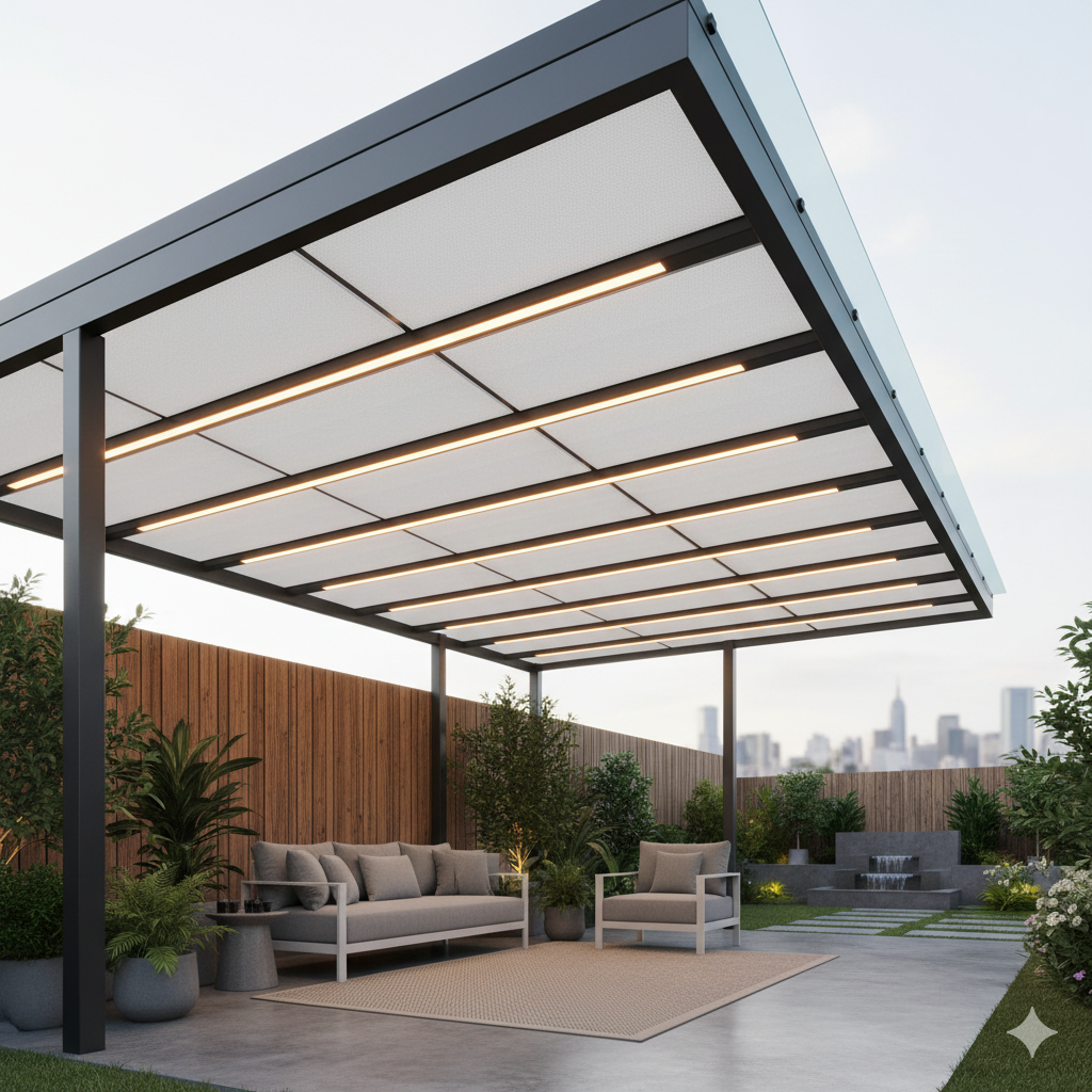 Atap kanopi kedap suara umumnya menggunakan bahan berkualitas seperti Alderon atau uPVC yang memiliki lapisan khusus untuk meredam suara. Material ini lebih tebal dan kokoh dibandingkan atap biasa, sehingga mampu mengurangi kebisingan hingga 20–30%. Selain itu, material ini juga tahan terhadap panas dan sinar UV, sehingga usia pakainya jauh lebih lama. Menurut Anda, bukankah lebih bijak memilih atap yang bisa menghadirkan ketenangan sekaligus perlindungan jangka panjang?