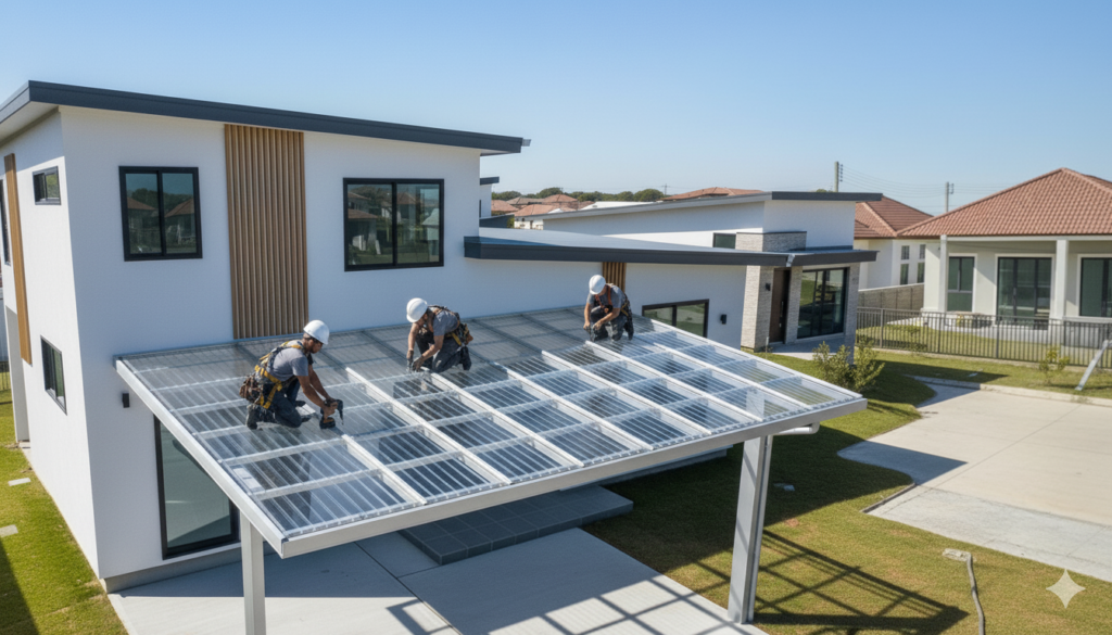 Jika Anda memasangnya di kanopi datar, tim desain Jaya Intero bisa bantu berikan solusi tambahan seperti pemasangan profil drainase atau modifikasi rangka minimalis agar kemiringan tetap tercapai tanpa mengganggu estetika.