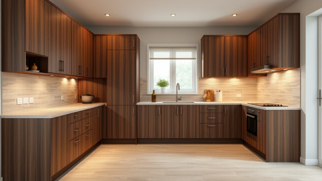 Material sangat memengaruhi daya tahan dan estetika kitchen set. Kami menggunakan bahan seperti plywood, blockboard, dan multiplek yang tahan lembap dan kuat untuk struktur lemari. Untuk permukaan meja (countertop), opsi populer meliputi granit, marmer buatan, solid surface, atau corian yang mudah dibersihkan dan tahan gores.