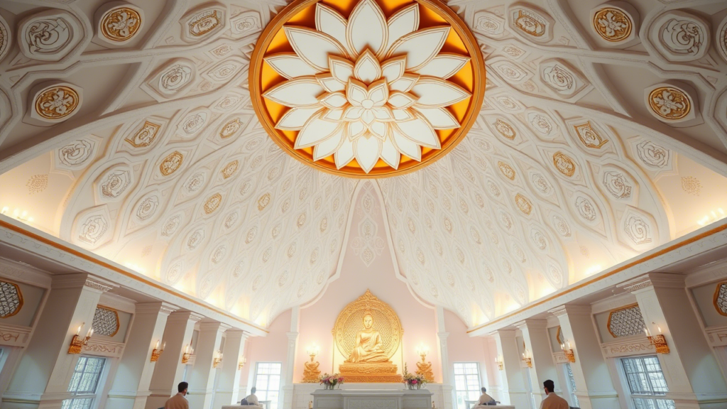 Contoh: Cocok untuk area altar utama, langit-langit kubah, atau ruang meditasi.