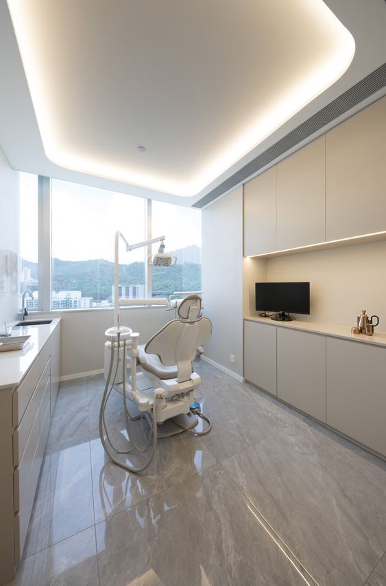 • Ruang Pemeriksaan: 4×5 meter, dengan kursi gigi modern, kabinet minimalis, dan pencahayaan terang.