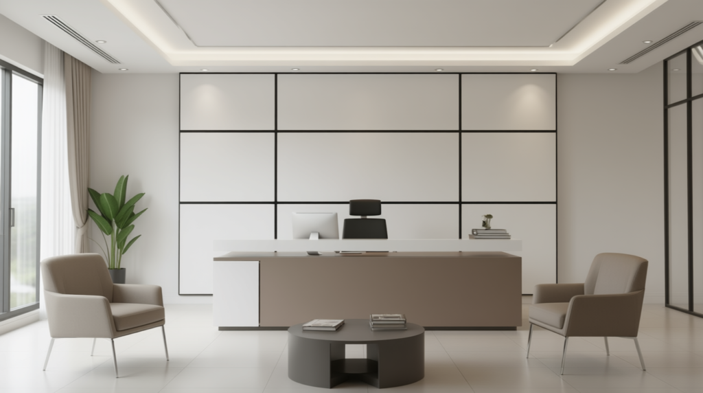 Jangan biarkan dinding kantor Anda terlihat polos dan biasa. Dengan sentuhan moulding yang dirancang khusus untuk suasana profesional, ruangan Anda bisa berubah total — lebih rapi, lebih berwibawa, dan lebih bernilai di mata klien dan tim.