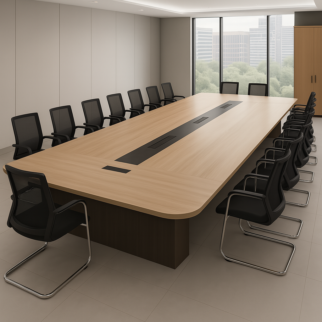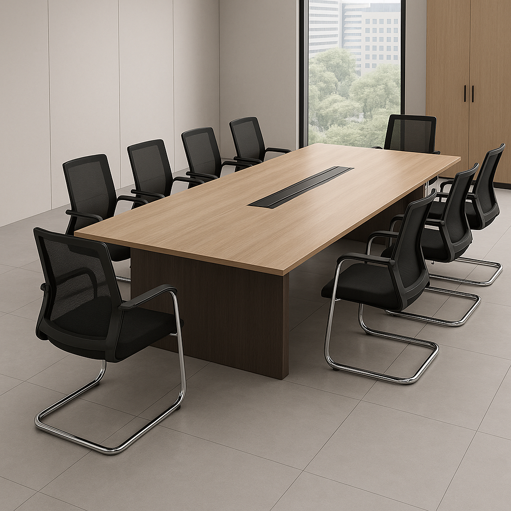 Langkah awal yang sangat penting adalah mengukur ruang rapat secara akurat, termasuk panjang, lebar, dan tinggi plafon. Ukuran meja harus proporsional dengan ruangan agar tidak membuat area terasa sempit atau terlalu kosong. Perhatikan juga posisi pintu, jendela, dan jalur sirkulasi agar meja tidak mengganggu akses keluar masuk.